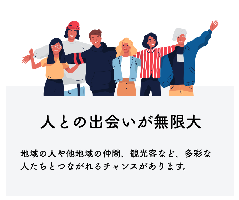 地域の方々や企業、観光客など、さまざまな人との出会いを通して、